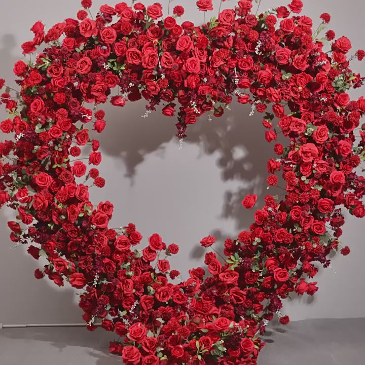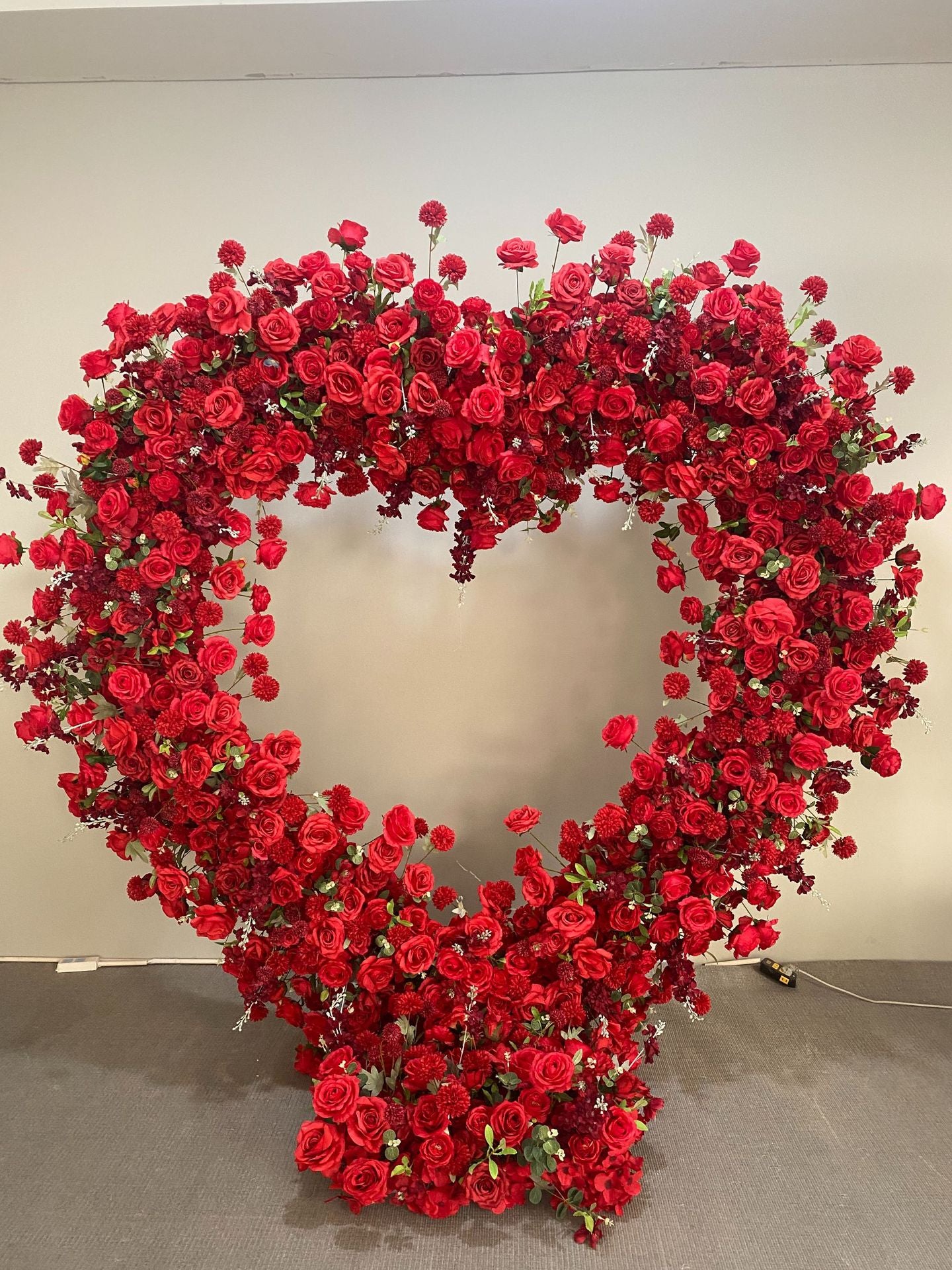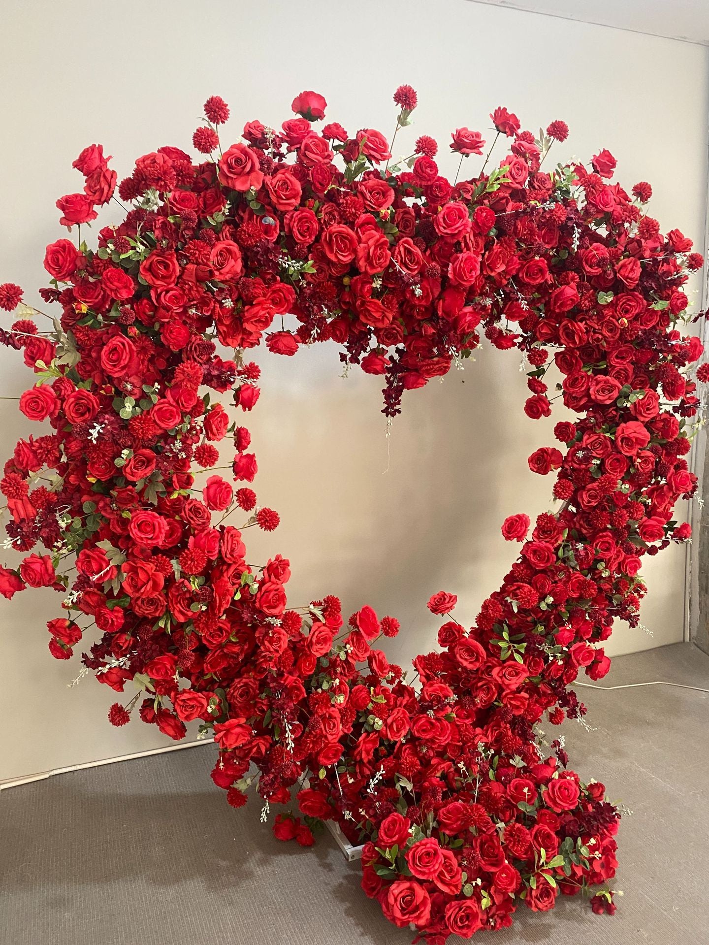 DWD052 Artificial 2m red rose hydrangea heart arch background wedding party floral backdrop arrangement