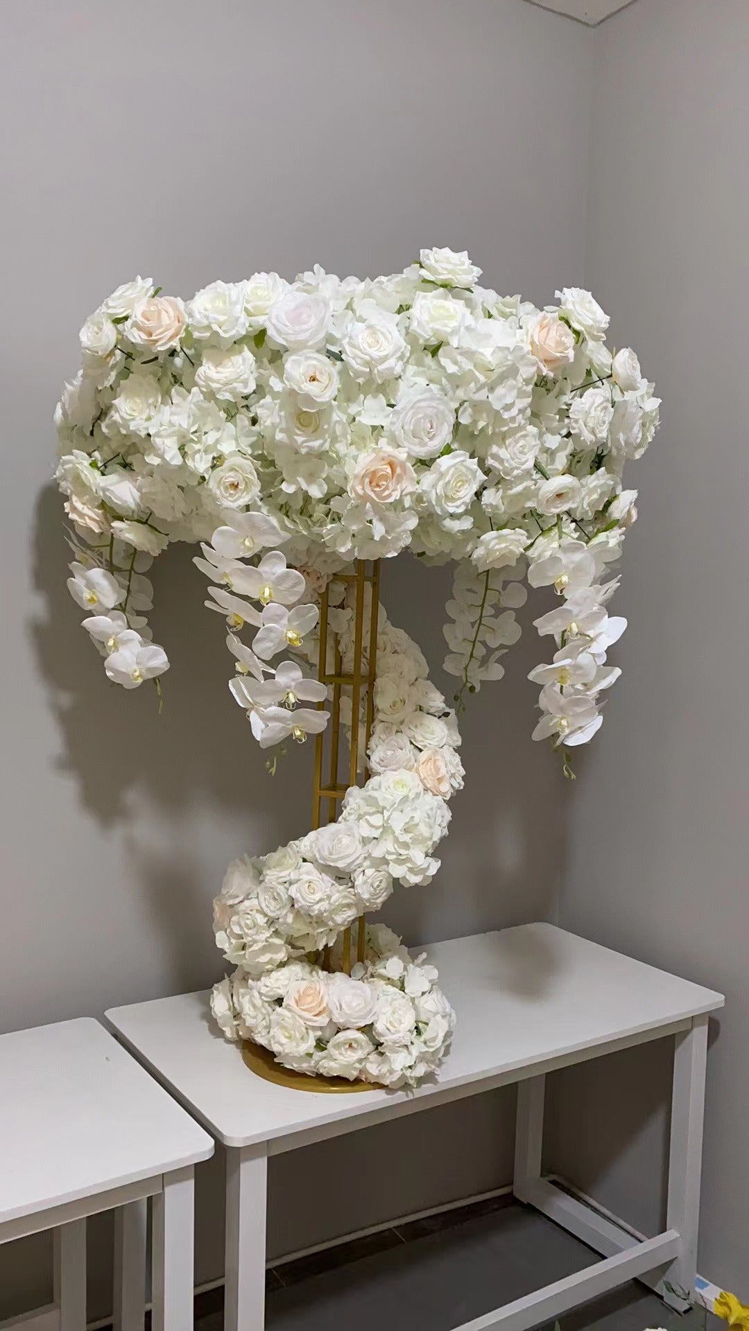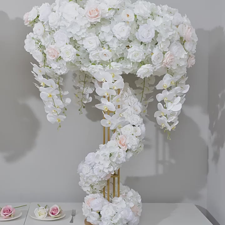DWD074 Hot sale 1.2m height white rose orchid garland table centerpiece decor wedding floral arrangement