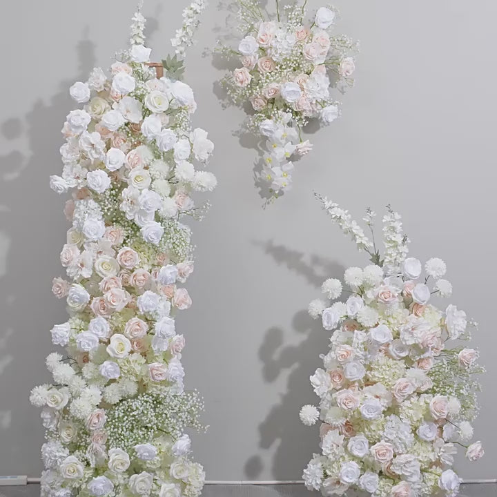DWD110 New arrival artificial white champagne flower row decor backdrop wedding party floral arrangement background