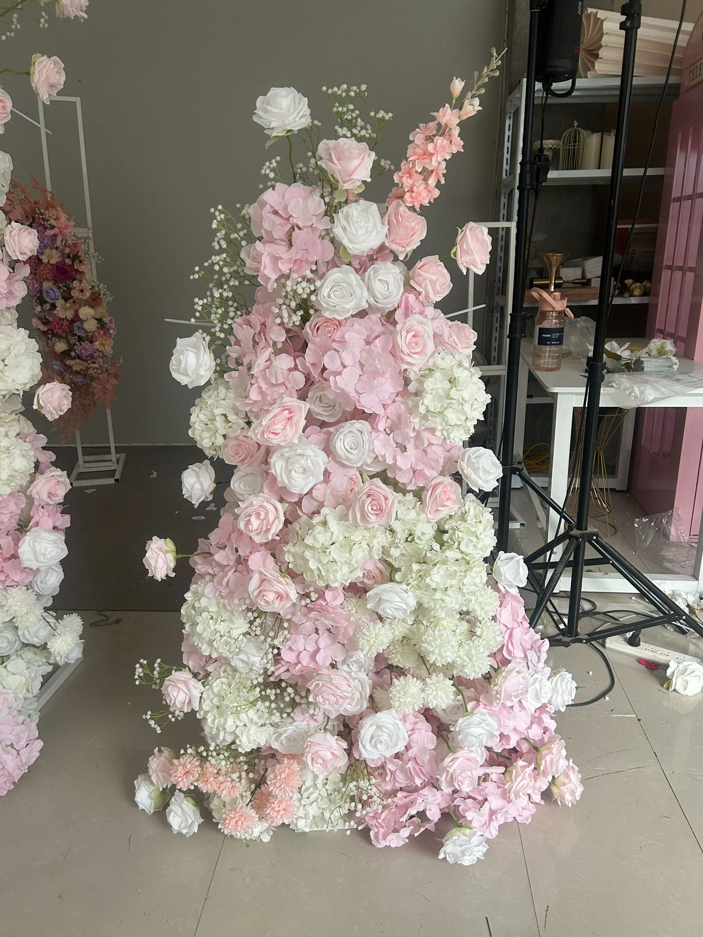 DWD117 New arrival artificial pink flower row decor backdrop wedding party floral arrangement background