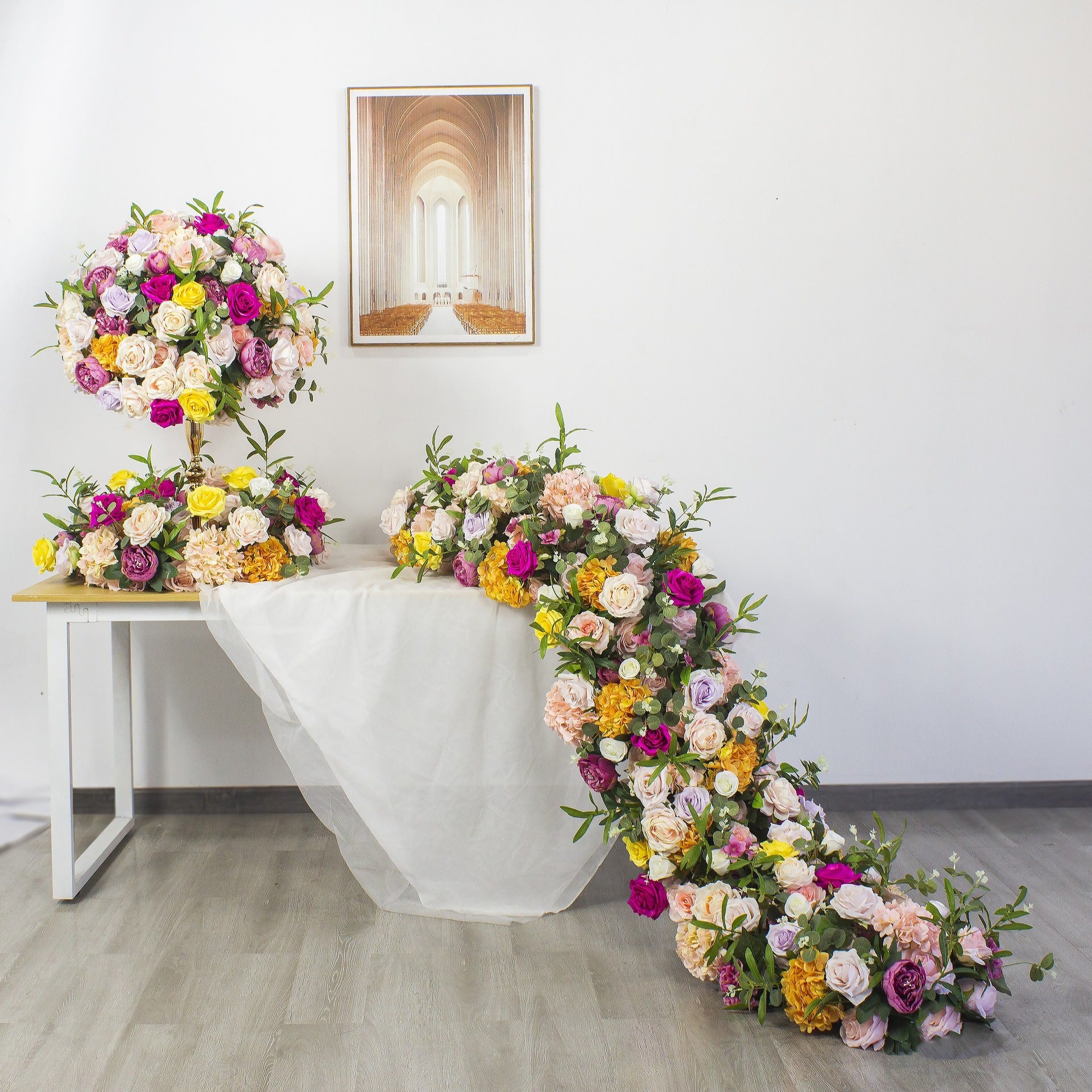 DWD158 New arrival yellow pink series ball runner table runner centerpiece row decor wedding party porch decor