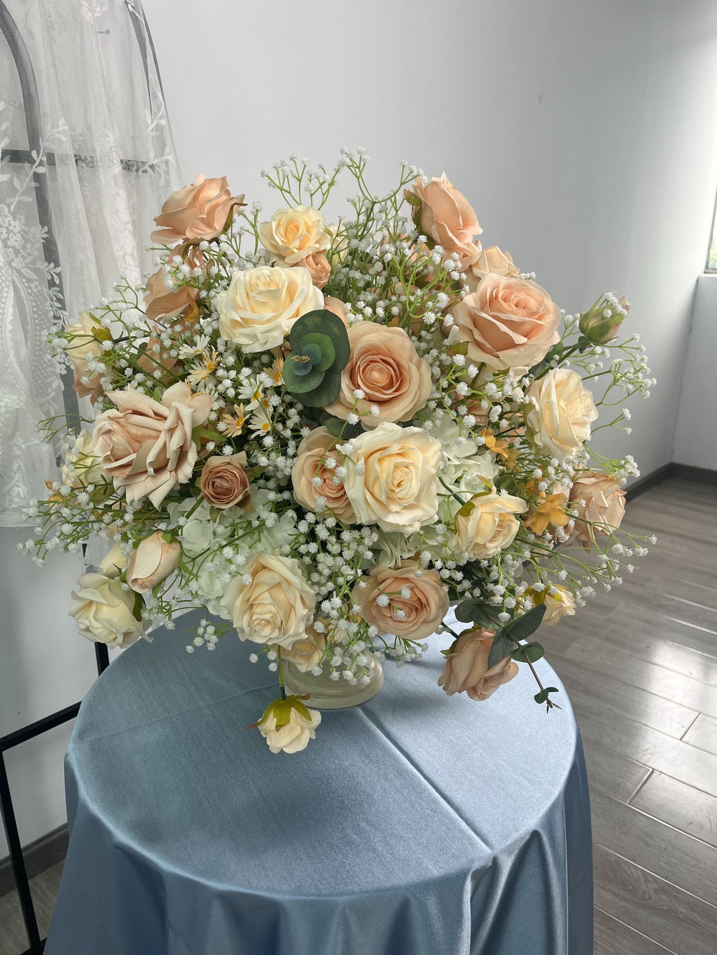 DWD163 Artificial 55cm champagne babybreath rose flower ball table centerpiece wedding event arrangement