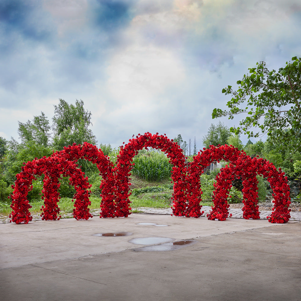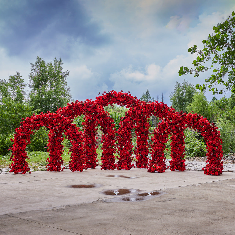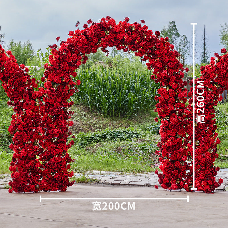 DWD199 Artificial 2m width U arch red rose arrangement background wedding party floral porch decor